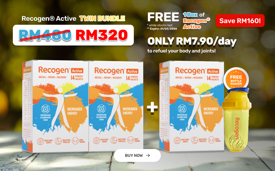 Backed by scientific studies, Recogen® supports joint comfort, flexibility, and cartilage health. It’s Halal certified and trusted by both active and ageing individuals.