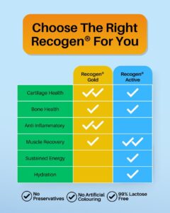 Recogen® is a natural food supplement. It is safe for long term consumption. We still move around on daily basis and there is a need to maintain the collagen at our joint areas.