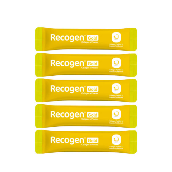 Every sachet of Recogen® Gold Collagen+ Powder contains 9g Pure Bioactive collagen peptides to promote healthy joints. Contains rose hip extract 1g.